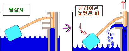 화장실에서 볼일을 본 다음 변기 물을 내리고 나서 물이 공급되는 시간이 길다면 플로트 로드(막대)가 높게 형성되어서 물이 계속 채워지는 상태가 됩니다.