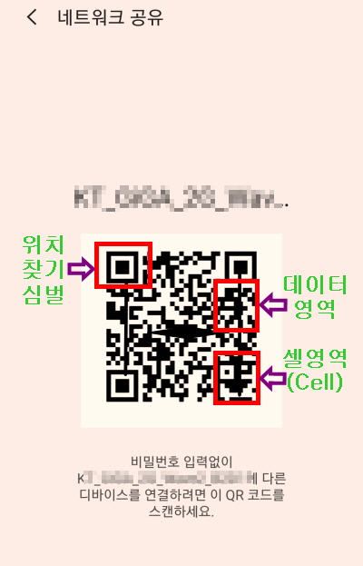 4) 그러면 QR코드가 화면에 보이게 되는데 이것을 누르면 데이터 값이 자동으로 설정되어 '네트워크 공유'라는 코드가 뜨게 됩니다.